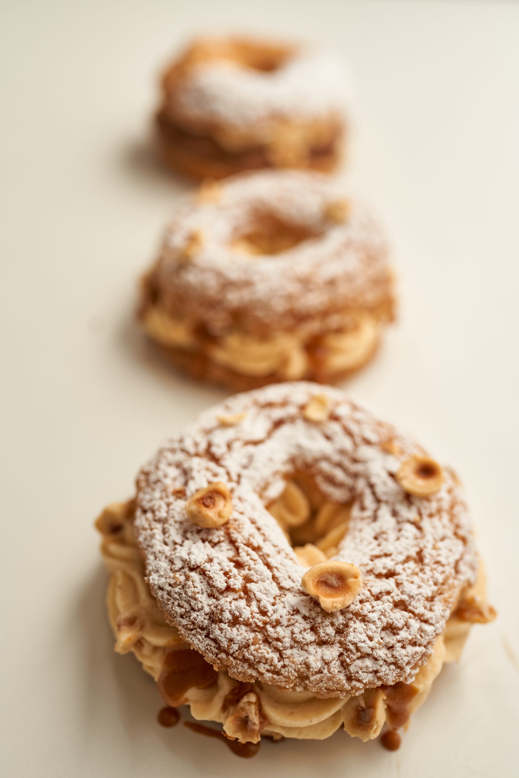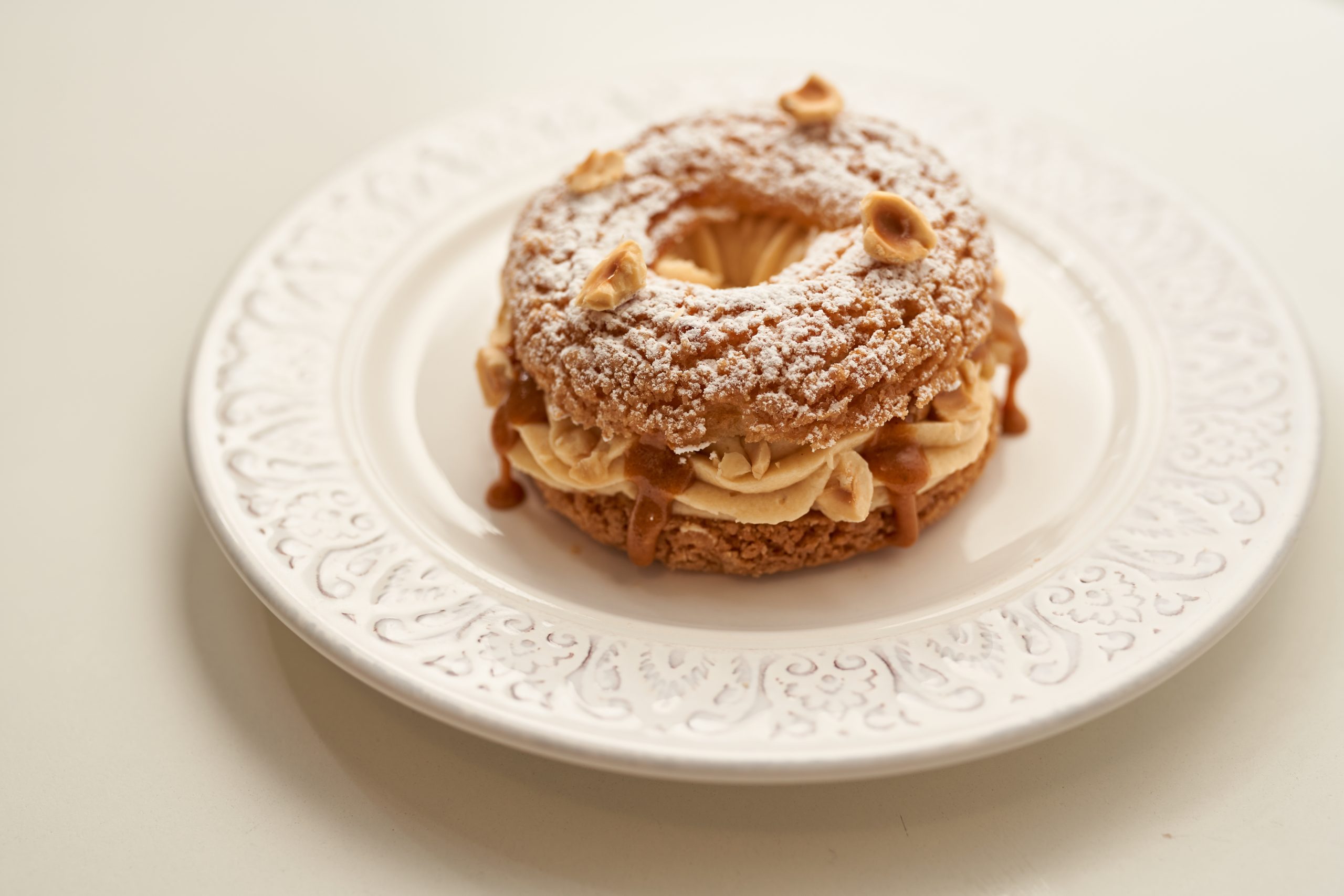 Το σχήμα του θυμίζει ρόδα. Δημιουργήθηκε για τον ποδηλατικό γύρο μεταξύ Παρισιού Βρέστης κι αποτελείται από φρεσκοψημένη ζύμη choux με τραγανή επικάλυψη από craquelin. Εσωτερικά θα βρείτε πλούσια praline feuilletine (δίνοντας μια crunchy νότα) κι εξωτερικά βελούδινη κρέμα mousseline αρωματισμένη με πραγματική πραλίνα φουντουκιού κάνοντας το Paris Brest ανάρπαστο.